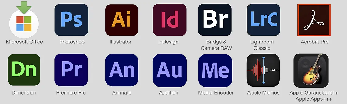 Nedenstående billede er mine kerneapplikationer // Udover disse befinder jeg mig også hjemme i Apples iWork suite med Pages, Keynote & Numbers // Jeg finder også min vej fint rundt i Mailchimp, som jeg har brugt både på ULF & ifm. Fair Trade Mail for Butik Salam// Jeg har serviceret ULF's hjemmeside i godt og vel 7 år nu, som er sat op i Wordpress (www.ulf.dk) og har bygget Butik Salams website (http://www.fairtradevejle.dk) i Wix...